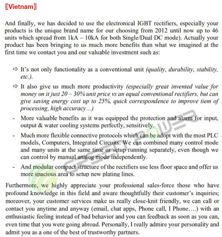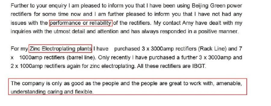 电镀整流器·客户应用反馈